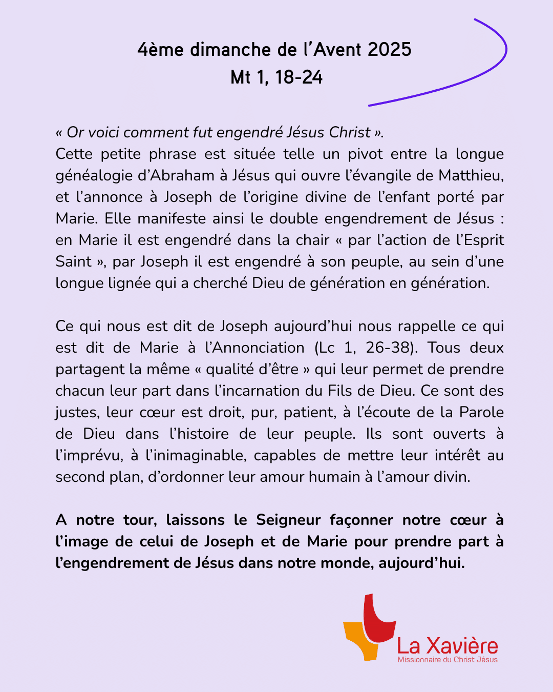 Pour marquer la nouvelle année liturgique, qui commence en ce premier dimanche de l’Avent, nous avons décidé de vous proposer désormais chaque mois des méditations, écrites par des xavières, sur les textes de la messe du dimanche. Vous trouverez sur cette page les méditations des quatre dimanches de l’Avent.