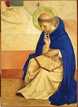 La finesse et la sobriété du dessin de Fra Angelico pour représenter Saint Dominique, la fluidité des tissus, la douceur des courbes nous invitent à demeurer près de lui en silence, dans l’attente.